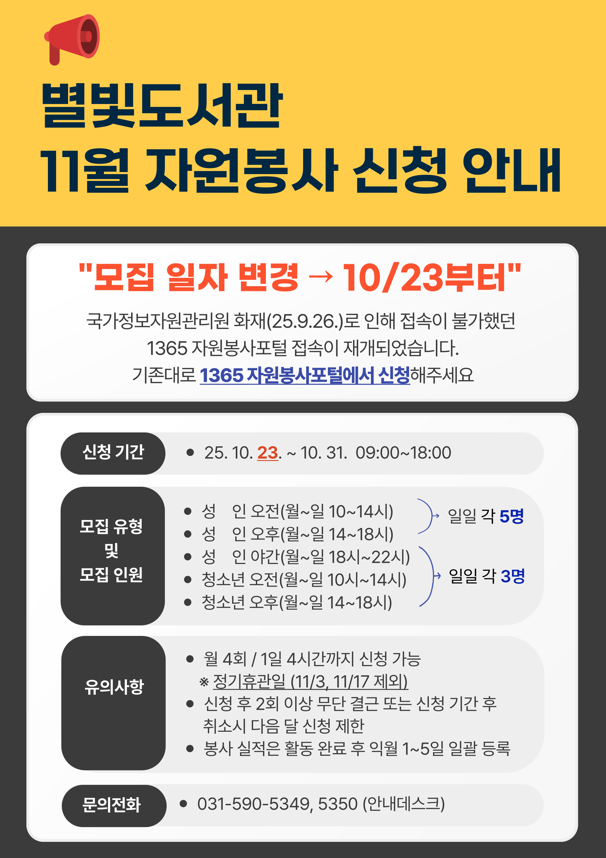 | 제목 | 별빛도서관 11월 자원봉사 모집 안내 |