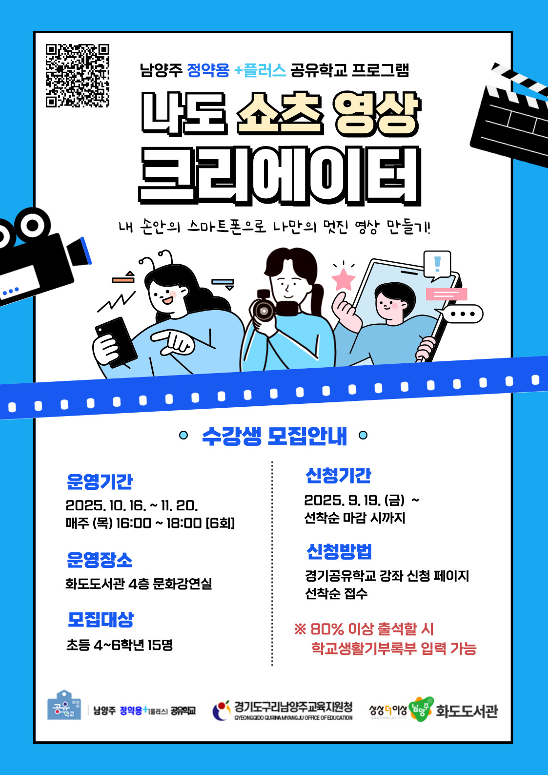 화도도서관 <나도 쇼츠 영상 크리에이터> 수강생 모집 (공유학교 연계 프로그램)