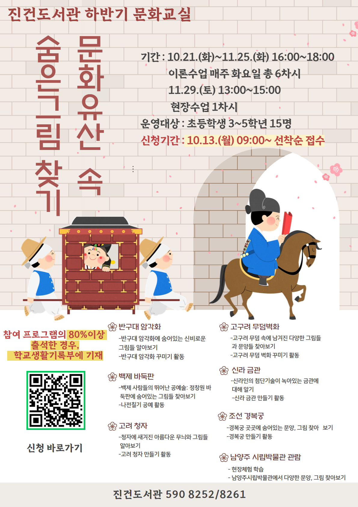 | 행사명 | (진건도서관 하반기 문화교실) 문화유산 속 숨은그림찾기 마감 |
