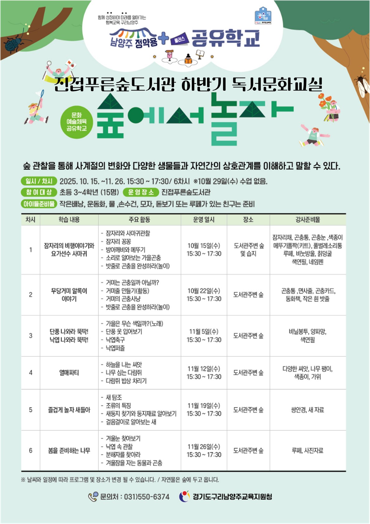| 행사장소 | 진접푸른숲도서관 인근숲, 지하1층 문화강연실 |