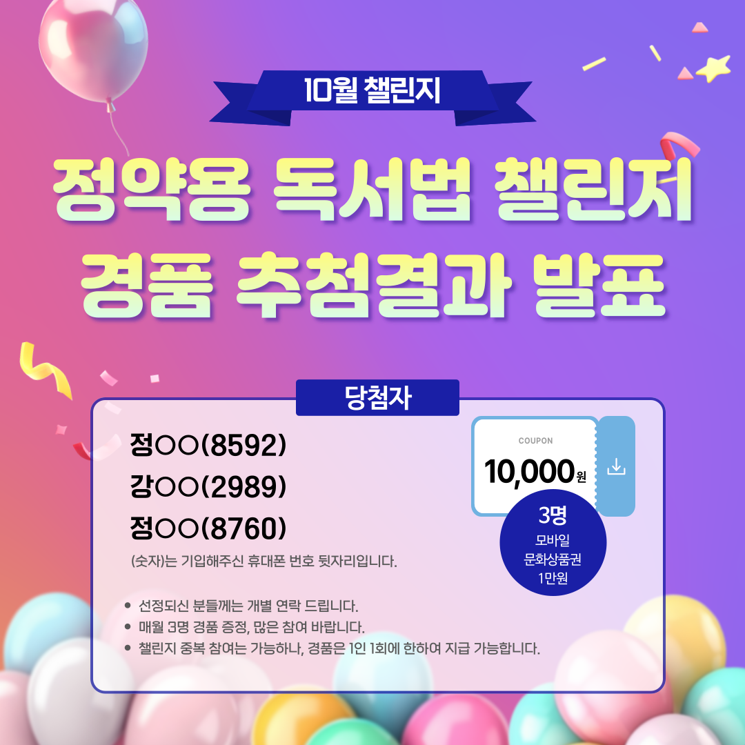10월 정약용 독서법 필사 챌린지 경품 추첨결과 발표