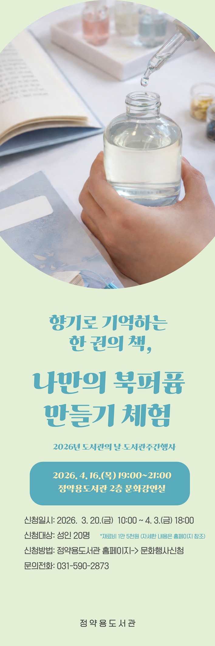 | 행사명 | [도서관주간행사] 향기로 기억하는 한 권의 책, 나만의 북퍼퓸 만들기 접수중 |
