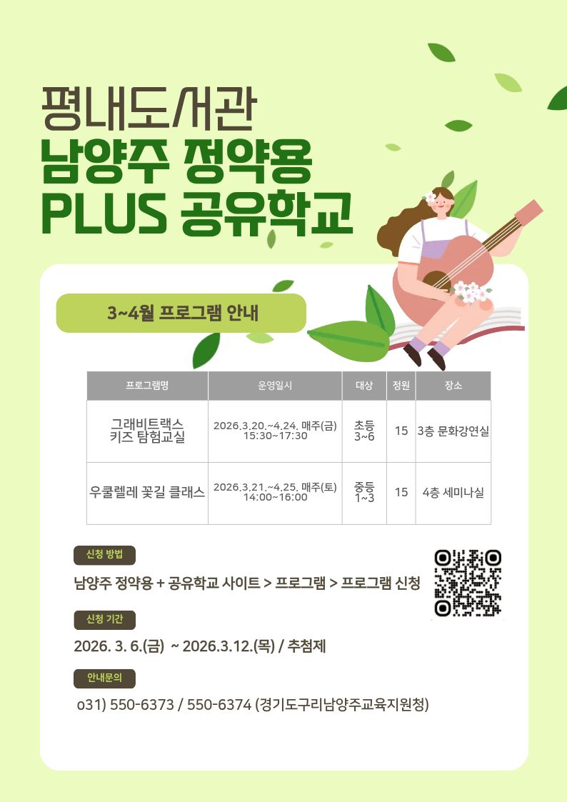 평내도서관 상반기 공유학교 프로그램 안내