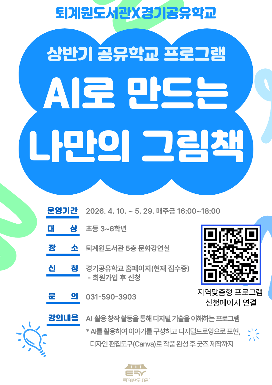 퇴계원도서관 상반기 공유학교 프로그램 <AI로 만드는 나만의 그림책> 안내 |