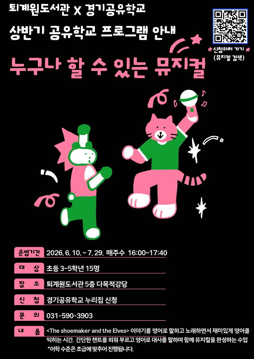 퇴계원도서관 상반기 공유학교 프로그램 <누구나 할 수 있는 뮤지컬> 모집 예정